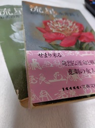 1週間楽しんだ桜の花は、突風と雨にさらされ、半分の花びらが落ちてしまった。この日、都内桜の名所、目黒川近くに住んでいる友人が、こちらの人の少ない桜を見に来るはずだった。見事に散ってしまい…、「また、来年ね!」と相成った。 (2024.04.12) <534> 一昨年から、お年賀状を失礼ながら絵葉書にさせていただいている。お相手の顔を思い浮かべながら、葉書を選ばせていただいている(お気に召さなかったら、すみません) 国内外の美術館に行く度に、使う用とストック用の複数買い、海外に出れば景色等、貯めに貯め…😅(^o^;) 葉書ファイルを開いてその量に、これは眠らせていてはいけない!と。 友人が転居の際、「600枚を処分した」と聞いた事も記憶に残っており、処分するよりは、と使うことにした。 友人の600枚!に驚き、(まさか!?)と思っていたのだが、一昨年、昨年と350枚以上は使用したのに、まだ倍位、ある。多分、ある(゚_゚) これは、これは…(汗) 同時に、積ん読。 読もうと思って買ったのに、読んでいない本もかなり、ある。絵葉書と同時にこちらも少し処分しようと、昨年末から読み始めた。 処分と言っても、「読まず」では、苦しいので、時間のある時はせっせと読んでいる。 次に読む本を本棚から探す。寄付する時は、出版が10年以内のものが役に立つそうで、なるべく新しい物に手が出る。 …と、本棚の上段に、長い間見慣れた背表紙の見出しが並ぶ。当たり前の光景になってしまっていた。 最近の不動産屋のコマーシャルに、「人生のお引越し回数は平均4回」と言うのがあった。確かに私も今の住居で4回目。 その間、ずっと連れてきた本達。(これはいつからうちに居るのだろう?)(この作家に記憶がないし…)同じマンションに居た同級生が転出する時にいただいたのかも知れない。 これも読んで処分しようと手に取った。 裏表紙を見れば、¥220!